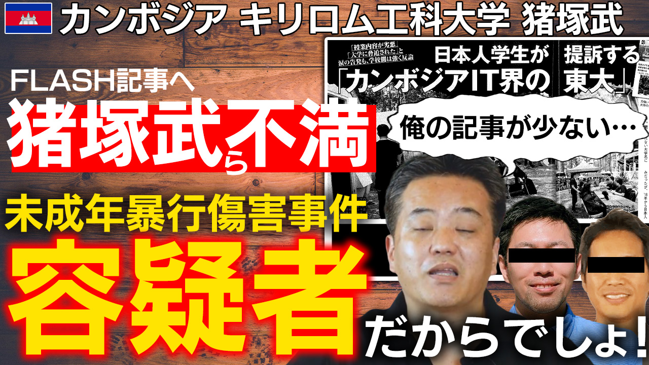 猪塚武理事(元キリロム工科大学学長、WAOJE代表理事)、別宮健三郎副社長(アクセンチュア出身)、釜我昌武副学長(東工大、千葉大、東芝出身)が暴行傷害で刑事告訴されていることもFLASHには掲載されていません。(※釜我はカンボジアみたいです)