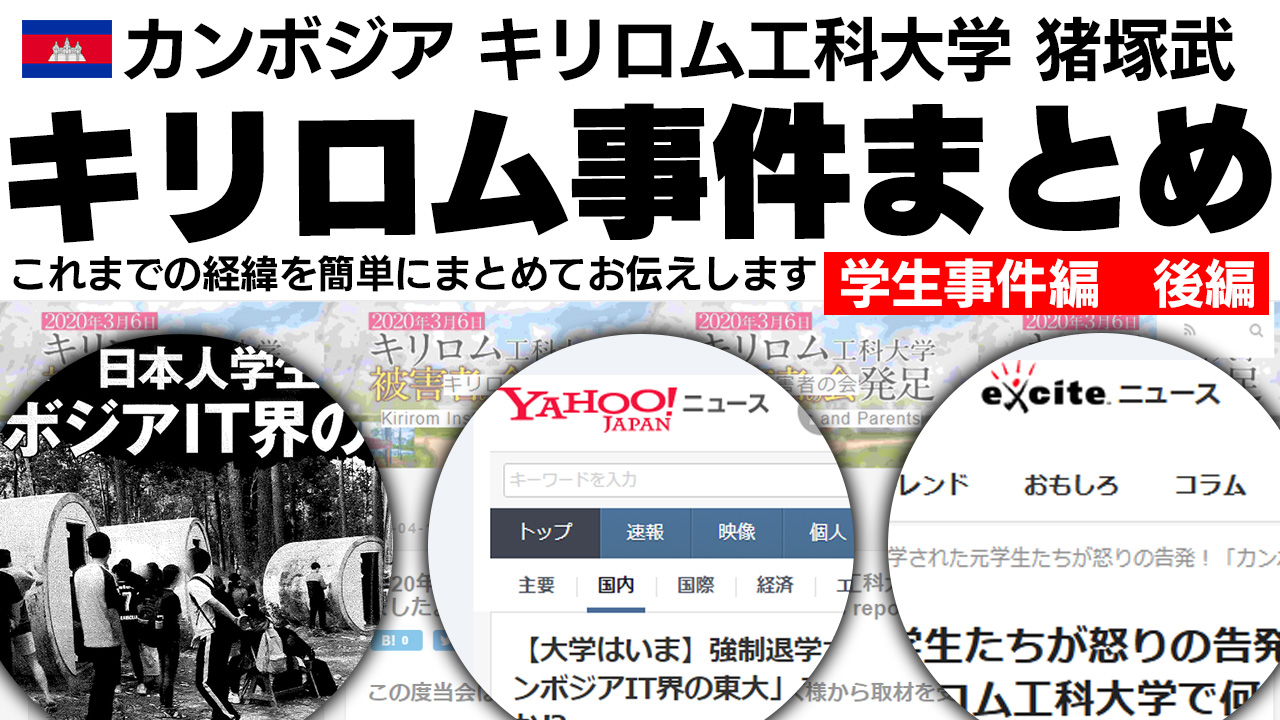 キリロム工科大学猪塚武事件、exciteニュースに「学生悲痛」と掲載!日本人学生への脅迫、暴行、強制退学(後編)