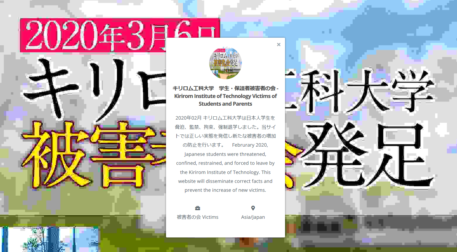 改善を放棄して事実を隠蔽して、キリロム工科大学の公式HPで虚偽事実による言い訳、悪質な誹謗中傷を続ける限り、事件は終息しません。