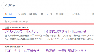 自分で金払って自分を検索一位にしてんのよ。今どき田舎のオーナー社長でもやらんよこんな恥ずかしいこと。アパホテルの女社長のごとく誰もそんなツラ見たくなくても事業で文句のつけようがない実績があれば、まだわかる。でも実績どころか事業大コケ、ペテン師呼ばわりされてる時に自分全面に出して誰が得をするのかと。まだぎりぎりキリロムに理解を示してる人間まで離れちゃうじゃんこんなの。これが問題とか疑念に対する貴方の答えですか、あーそうですかって話よ。端的に言ってこれは猪塚武武が、自らをなぐさめる行為。
