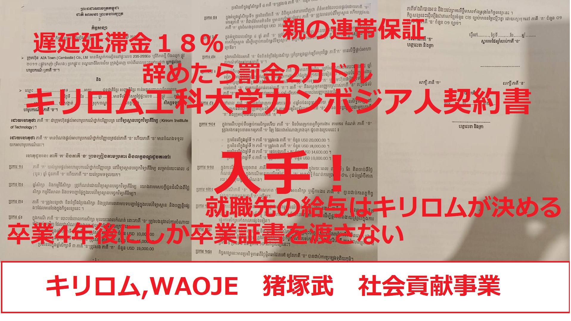 入学時無料でも厳し過ぎる付帯条件が付いています。ちなみにカンボジアの国立大学なら年間4~5万円で通えます。