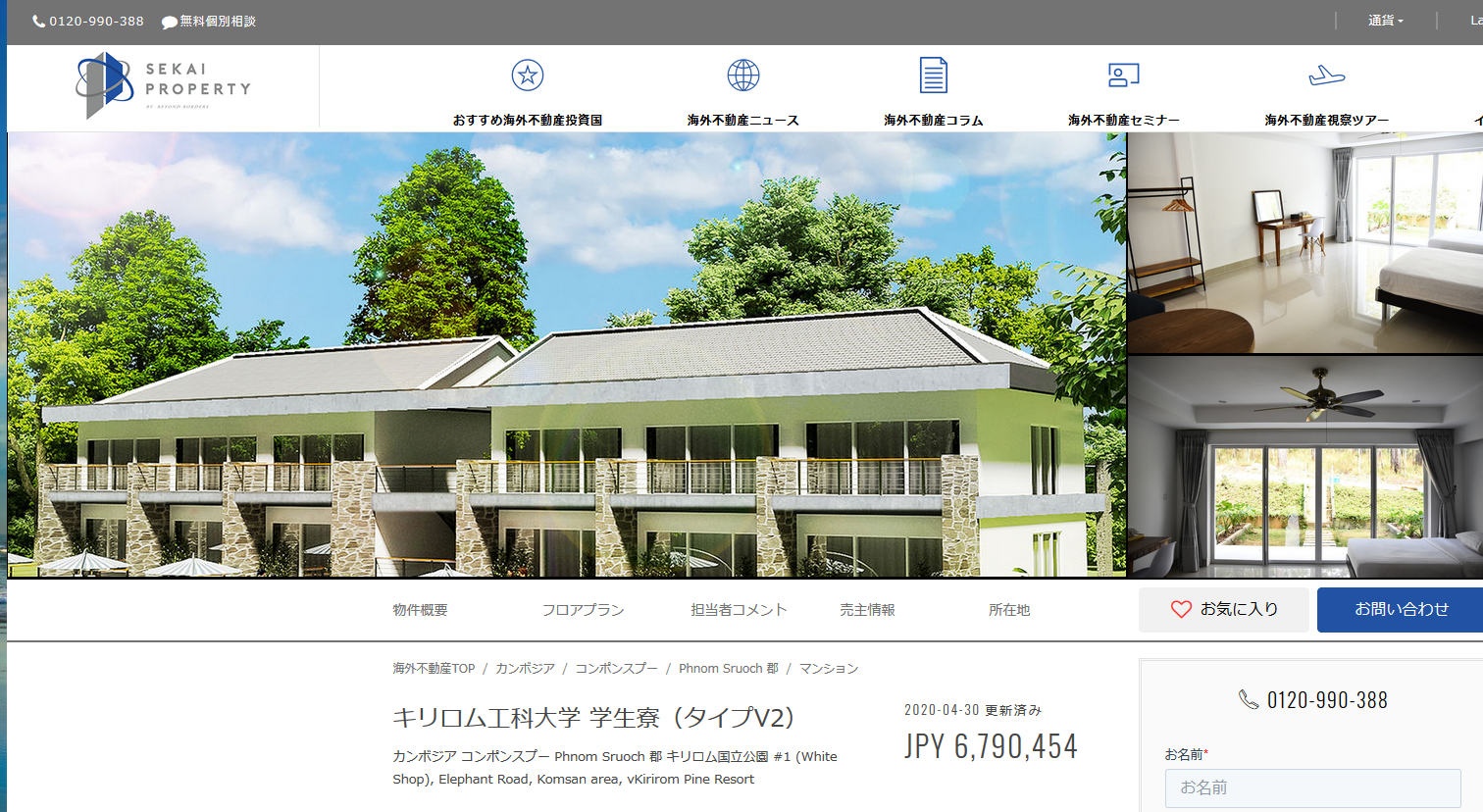 キリロム工科大学学生寮投資を現在も積極的に行っている日本の宅建業者株式会社BEYOND BORDERS 東京都知事(1)98329号 東京都新宿区新宿2-4-16 栄幸ビル4Fの販売広告(2020年4月20日)によりますと、2018年12月完成地上2階建ブロック作りの5部屋タイプの学生寮を「専有面積 $63,000」と販売していますので、大人数用の学生寮も区分でバラ売りをしているようです。