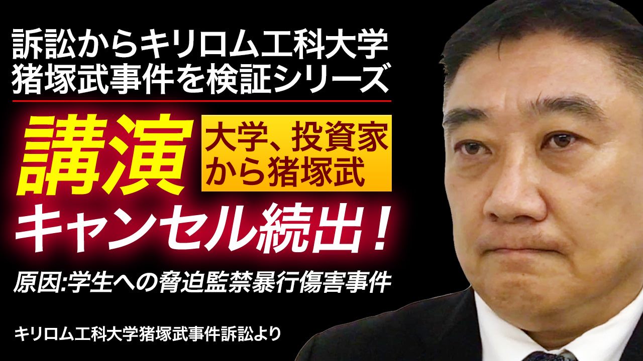 大学、投資家の講演がキャンセル続出は猪塚武の事業の不祥事が続いているからです。