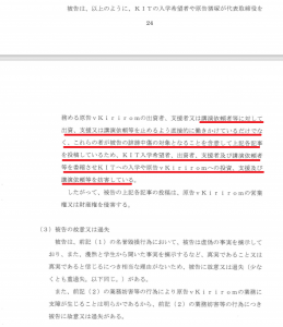 そして訴訟外の原告でないvKiriromが入学者ゼロで非財産的損害5000万円は下らないとあります。非財産権とは慰謝料のことであり、なぜ実質の損害を請求しないのか、実際の損害等発生していないのではと疑念を抱かざるを得ないです。