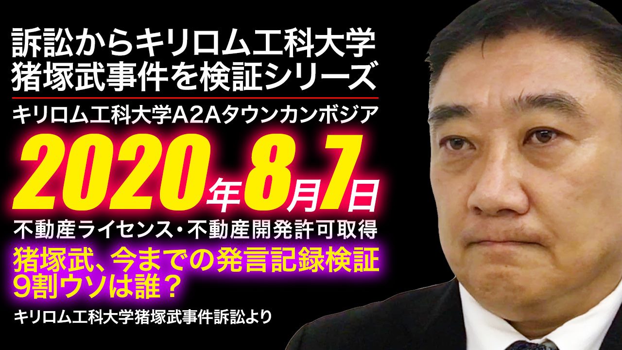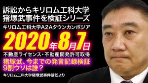 キリロム工科大学猪塚武 不動産ライセンス取得は2020年8月7日でした。(経済財務省より)