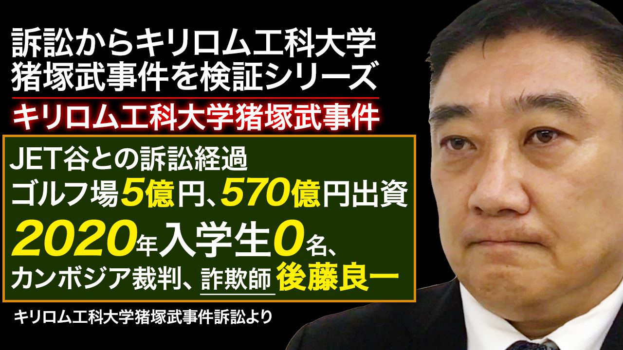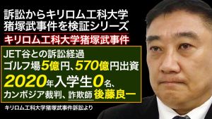 キリロム工科大学猪塚武事件の訴訟経過報告 ゴルフ場5億、570億円、2020年新入生0名、詐欺師後藤良一。。。