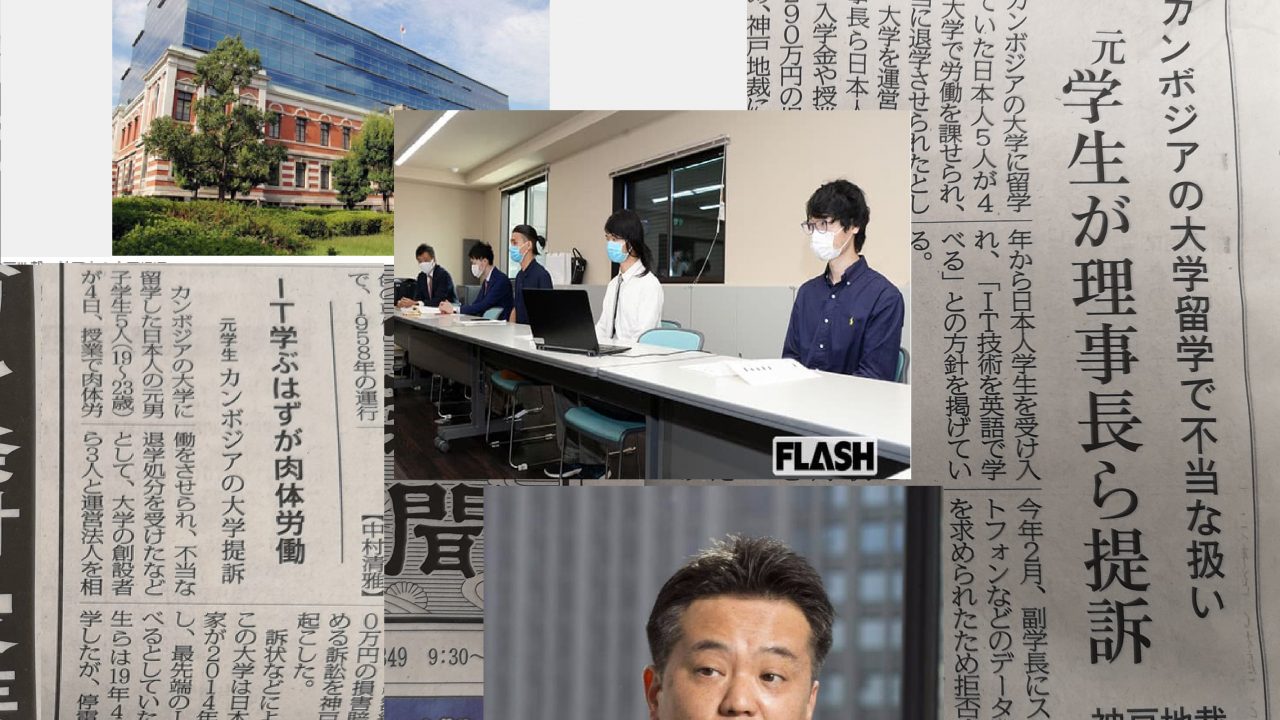 「社会貢献事業」「学費無料」「カンボジア人のために」と称されていた大学の運営は、カンボジア人学生は実際は大学4年間働かされ、卒業後も大学に給料からマージンを天引きされる、そして卒業後4年を経過しないと卒業証書がもらえない実態が明らかになった。